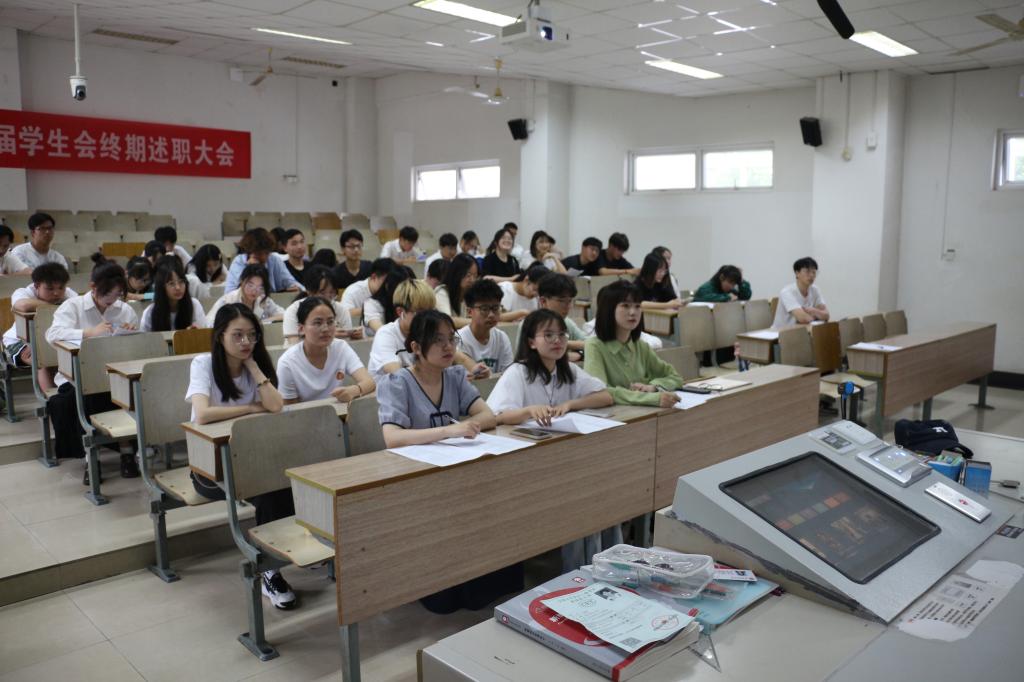 5月28日下午,我院学生会在仙林校区博远楼104教室召开第十九届学生会终期述职大会。学生会主席团成员、各中心负责人与全体志愿者参加了此次会议。本次会议由综合事务中心志愿者佘德仪主持。