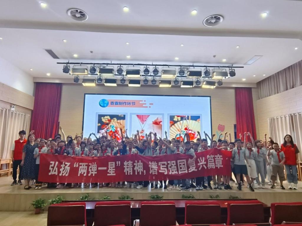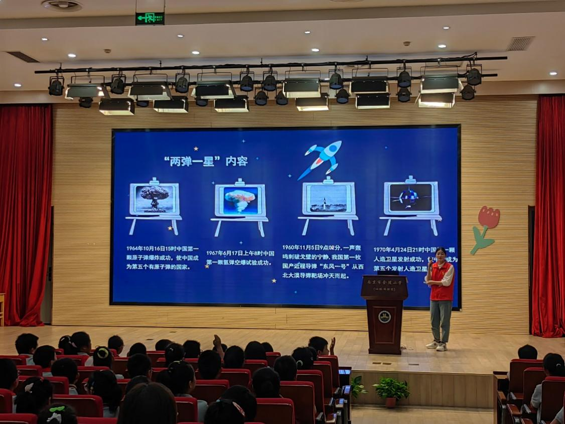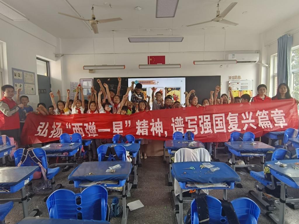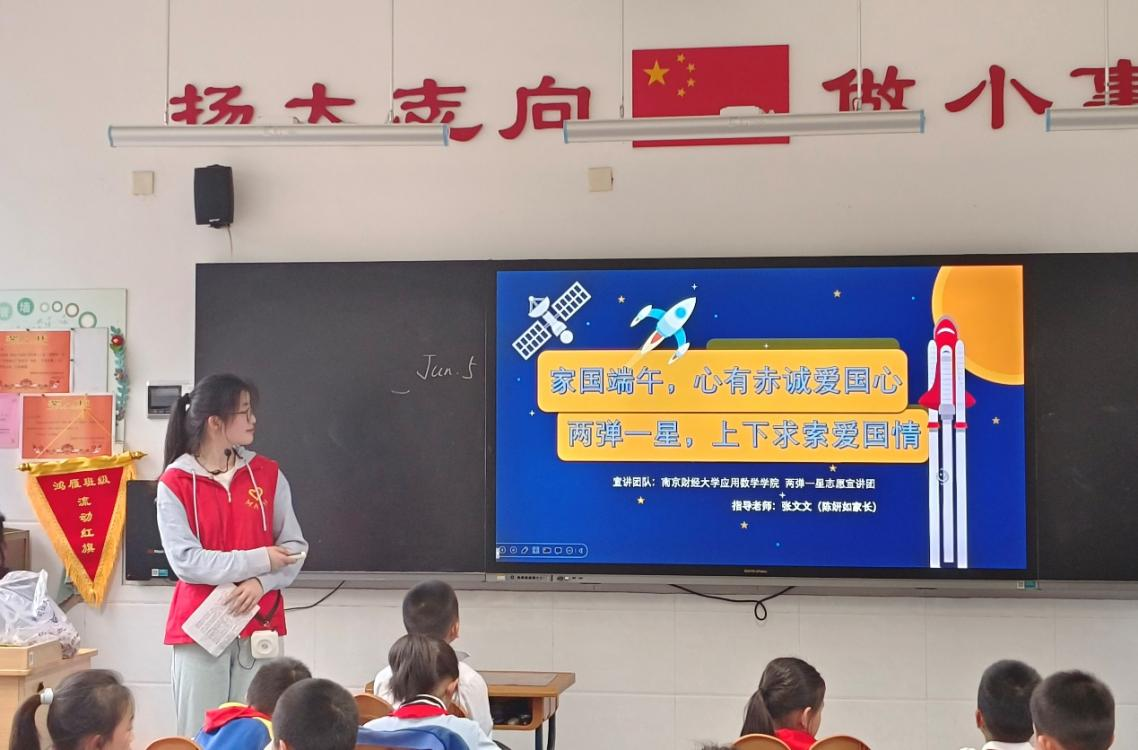 为宣传普及核科学知识,引导广大青少年学习“两弹一星”精神,牢固树立家国情怀和科技报国意识,同时在端午前夕弘扬中国传统节日文化,带领青少年体验民俗活动,6月5日、6月14日、6月16日,我院“熠星独行,‘核’护万家”暑期“三下乡”社会实践志愿宣讲团分别前往南邮小学、金陵小学、摄山星城小学开展“两弹一星”精神宣讲暨民俗体验活动。学院党总支副书记孙晓飞、办公室主任张文文、团委书记李攻明、全体志愿者以及三所小学部分师生参加宣讲。宣讲由金数2202班张灵凡、钱磊同学主持。