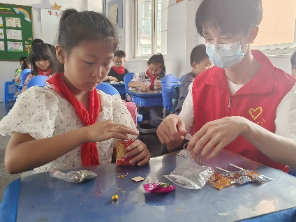 为迎接端午节的到来,志愿者还带领同学们开展了弘扬中华优秀传统文化的民俗体验活动:制作特色香囊。制作的过程虽然复杂,但是当大家拿着散发着悠悠艾草香的香囊时,每个人脸上都洋溢着收获的笑容。
