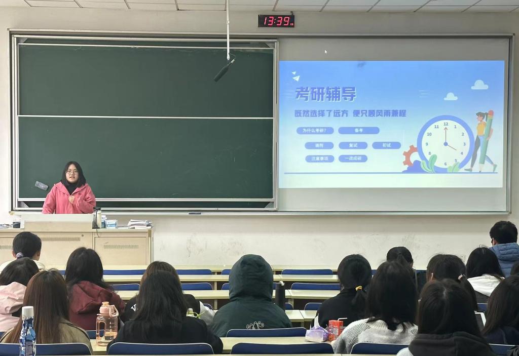 为了帮助学生更好地了解考研形势,进一步明确考研规划,营造良好的学习氛围,11月2日、11月10日,我院分别在仙林院区博文楼203教室和德业楼111教室以线上线下相结合的方式举办学长学姐考研经验分享会。分享会邀请了刘亚如、黄熊志远、徐鸿、常博宇、张秀花、胡钟仁等5位优秀的学长学姐们为同学作考研经验分享。学院2022级、2021级部分学生参会。