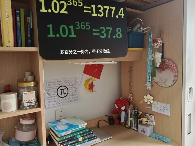 本次活动由寝室创意装饰和作品收集评选两个部分组成。活动期间,同学们积极参与,亮点纷呈。有绿植簇拥的阳台;有温馨舒适的卧室;有干净整洁的客厅……同学们纷纷发挥奇思妙想用数学元素装饰宿舍:有同学在桌面墙面上贴上著名数学家的照片,激励自己时时刻刻保持一颗热爱数学的心;有同学用10张图片构成了MA,形成数学的缩写,每一张图片都数学的典型代表:微积分、欧拉公式、薛定谔方程……让我们更好地了解数学历史;有同学定制了个性十足的寝室门牌,使用二次利用物品进行设计和制作,将数学元素融入其中。后续,各寝室优秀创意和设计将在学院公众号上进行展示投票,评奖并表彰。