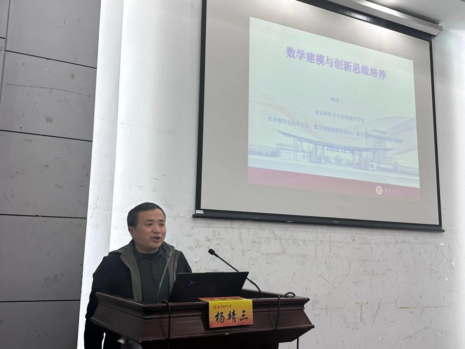 为增强同学们对数学建模的认识,激发对数学建模的兴趣,提高参加数学建模比赛的积极性,为第十五届数学文化节画上圆满句点,12月14日下午,我院于仙林校区德经楼报告厅举办数学建模讲座暨数学文化节闭幕式。讲座由学院经济数学实验室主任杨靖三副教授主讲,我院2023级本科生和研究生参加。