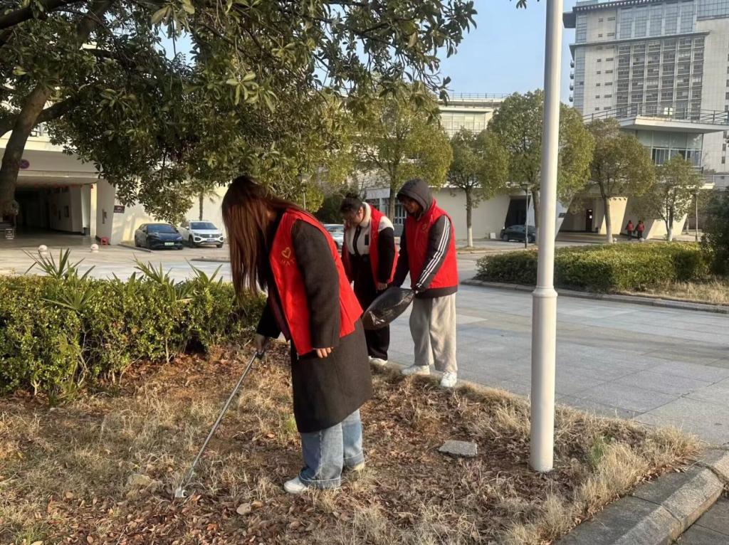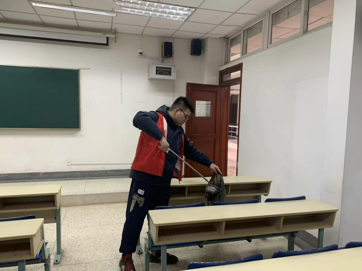 3月3日下午,我院组织青年志愿者在仙林校区开展校园环境清洁打扫活动。活动中,志愿者分组对学院在德业楼一侧的卫生包干区进行全面打扫,对道路、绿化带、墙面的垃圾进行清理。同时,志愿者对教学楼教室和公共区域的卫生进行清洁,检查自习室、教室的空调、灯等电源是否关闭。