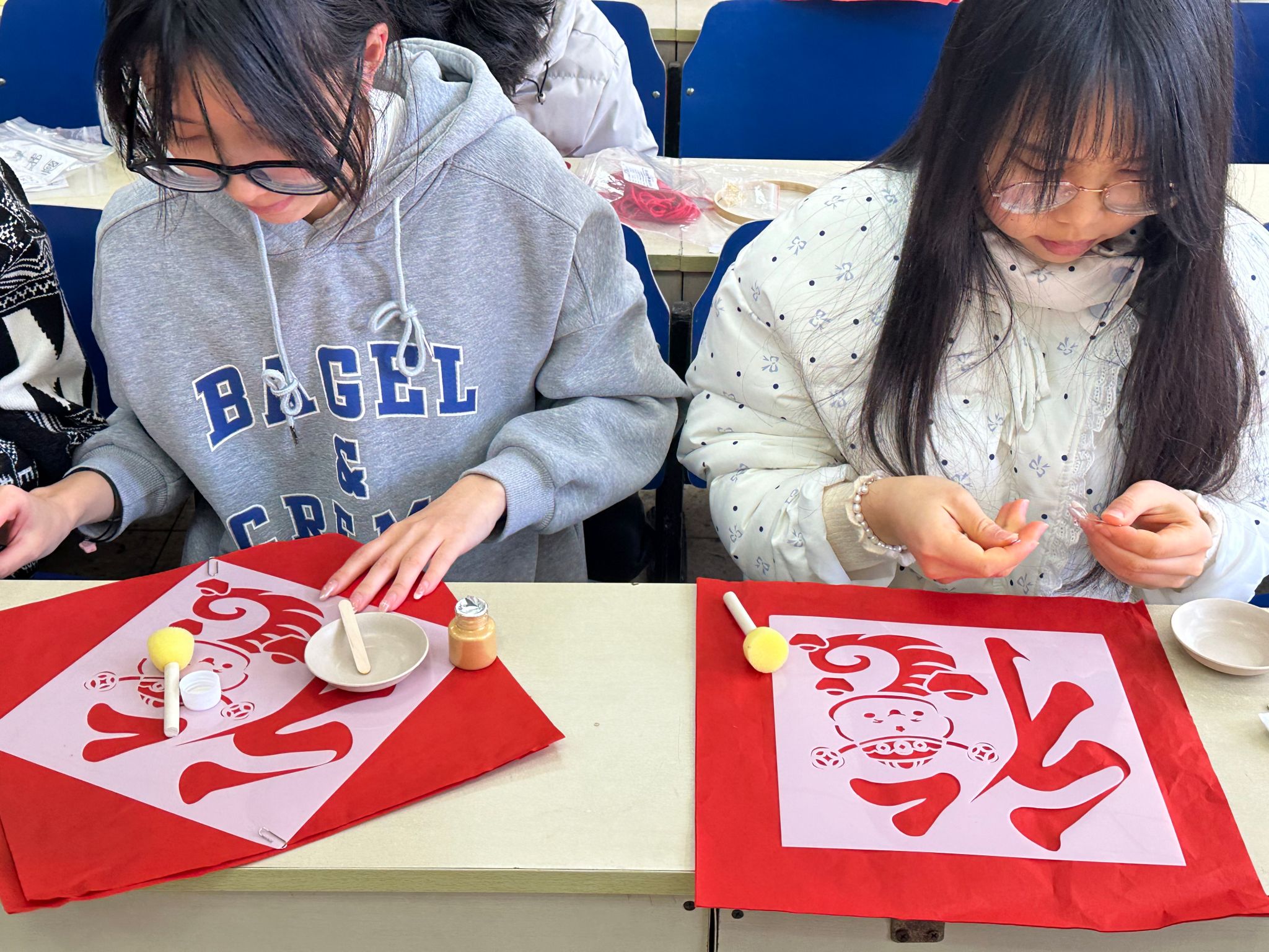 本次活动匠心独运,巧妙融合了百福风铃与拓印两大非物质文化遗产的手工制作技艺。现场为同学们准备了精美的蛇年主题印版,以及一系列寓意深远的吉祥祝语,以此迎接元旦佳节的到来。在这一辞旧迎新的美好时刻,同学们心中满载着对过往岁月的温情回顾,同时怀揣着对新一年的无限憧憬与期盼,向未来许下了真挚的愿望。
