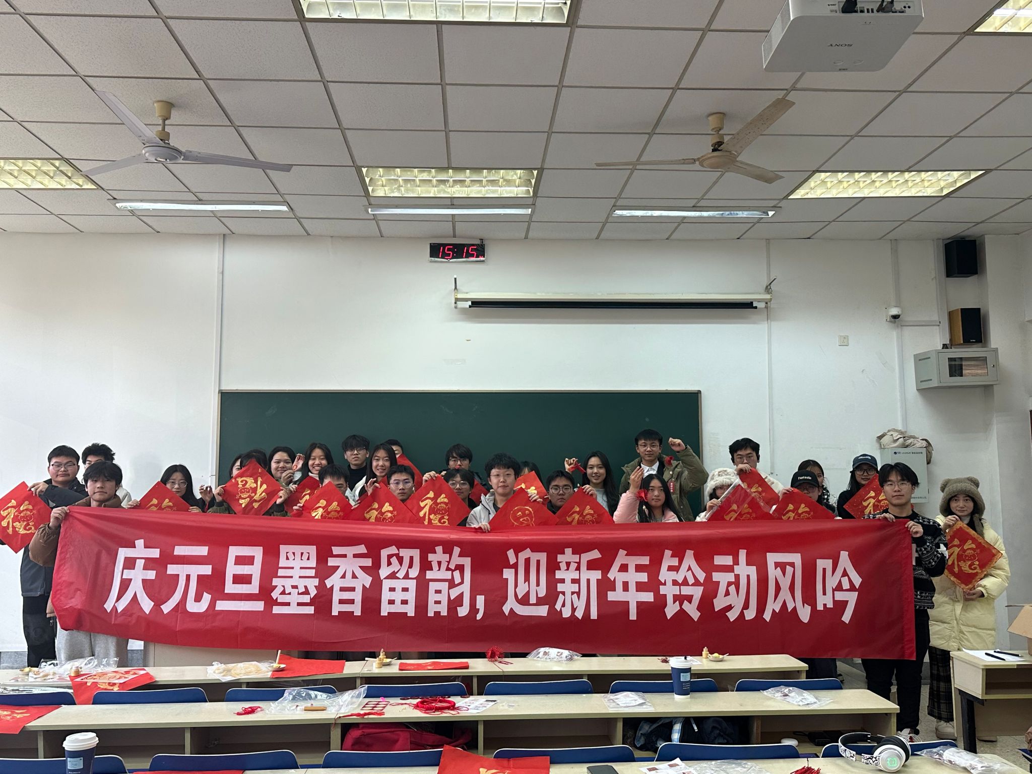 为喜迎元旦,欢辞旧岁,12月15日下午,我院在德业楼106教室举办了以“庆元旦墨香留韵,迎新年铃动风吟”为主题的元旦特别活动。学生会成员们积极参加了本次活动,共赴一场充满古韵与新意的欢聚。