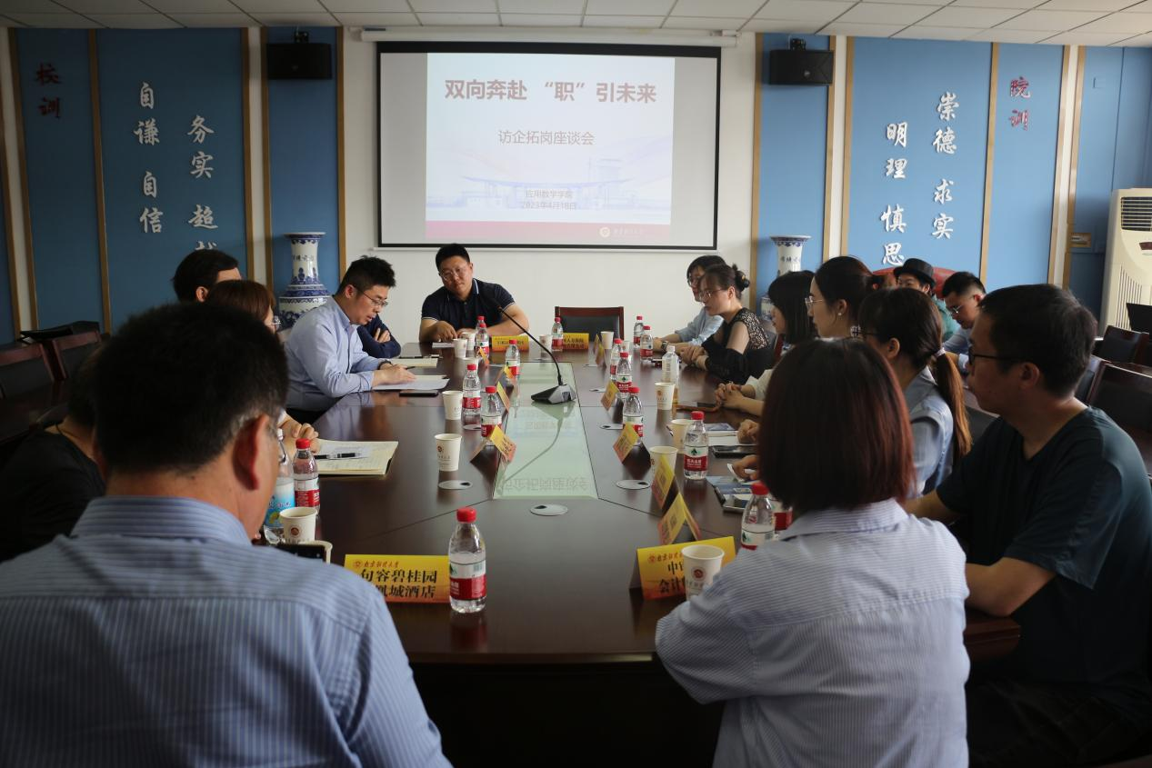 为深入学习贯彻党的二十大精神,全面落实党中央、国务院对高校毕业生就业创业工作的决策部署,抢抓春季招聘关键期,深化供需对接,引领毕业生前往重点产业、关键领域就业,4月18日中午我院在仙林校区德业楼508会议室举办访企拓岗座谈会。学院领导班子、毕业班辅导员和东方财富证券股份有限公司江苏分公司、国信证券股份有限公司、南京博涯信息技术有限公司、中审亚太会计师事务所、中国人寿保险有限公司以及杭州银行南京分行等用人单位代表参加了座谈。座谈会由学院党总支副书记孙晓飞主持。
