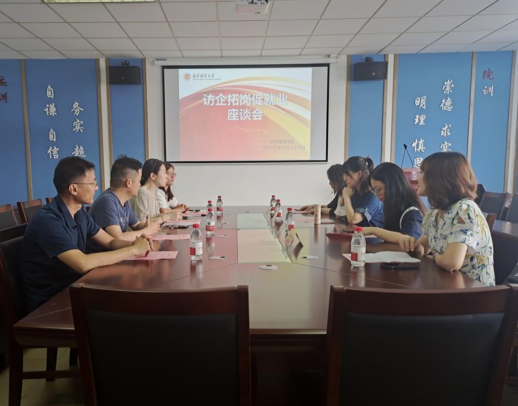 为深入推进“访企拓岗促就业”专项行动,6月24日中午,我院邀请.苏鹰科技集团有限公司、平安银行南京分行、天宏华信会计师事务所等三家企业相关负责人在德业楼508会议室开展“访企拓岗促就业”座谈会。我院党总支副书记布丹丹、副院长孙成峰、数学系主任吴波、学工办主任孙晓飞参加了座谈会,座谈会由我院党总支副书记布丹丹主持。