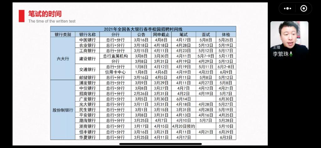梅高翔老师讲解各大银行“春招”笔试时间