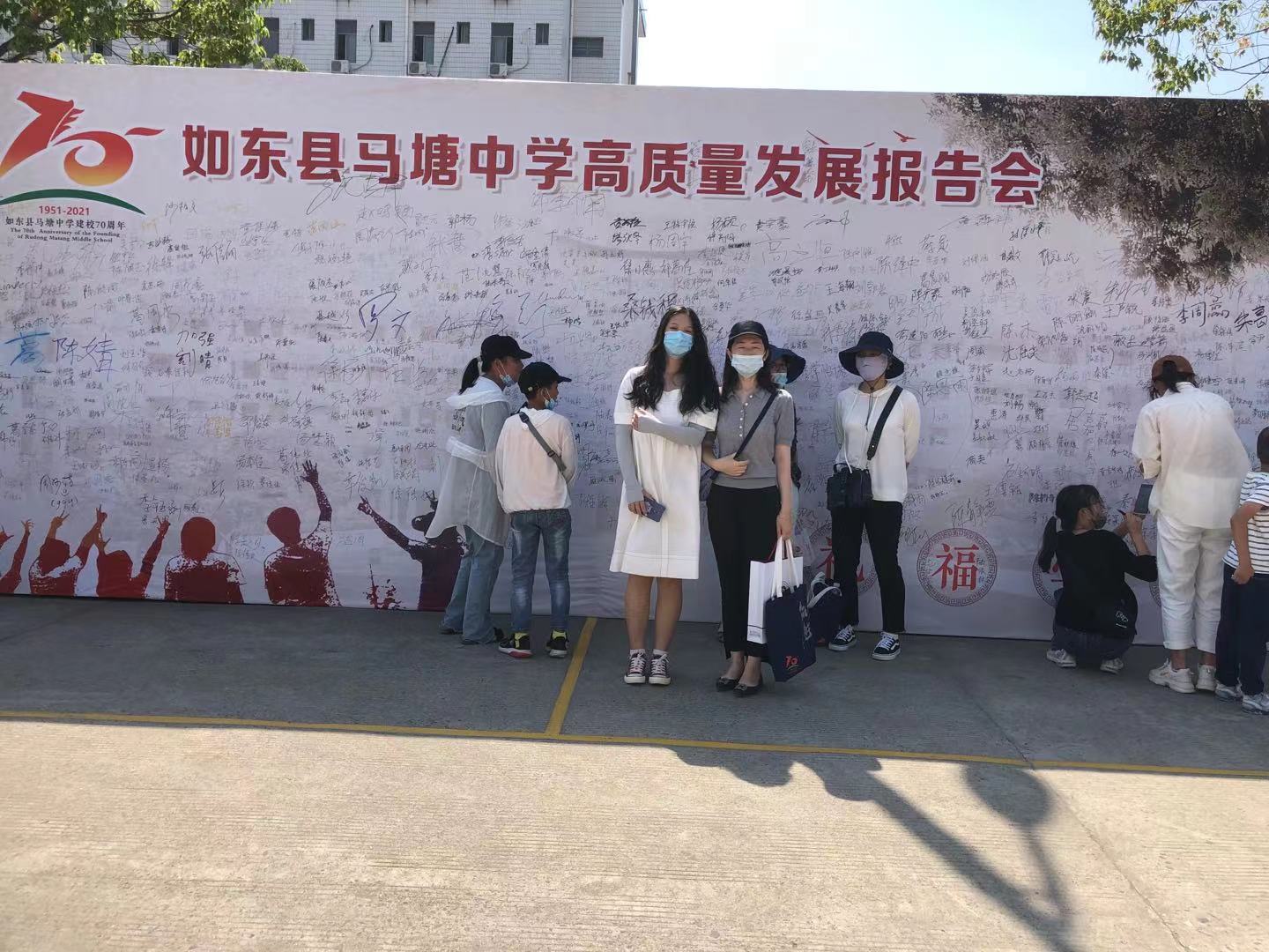 10月2日上午,我校南通片区招生宣传工作人员参加了南通市如东县马塘中学高质量发展报告会暨建校70周年庆典。我院党总支副书记布丹丹、2019届马塘中学毕业生金数1902班学生顾玉婷在工作人员的引导下,参观了校史馆,与该校领导、高三班主任代表进行了交流。报告会上,马塘中学通过“赓续红色基因”“礼赞奋进之路”“梦想万马奔腾”三个篇章,全面展示了马塘中学红色育人的丰硕成果。