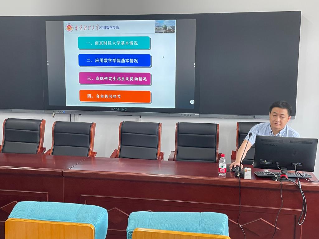 陈波副院长代表江苏第二师范学院数学与信息技术学院对南财数学学院到来表示热烈欢迎,双方就各自学院的发展历史以及培养理念展开了深入的交流,陈院长希望两院在以后进一步加强沟通联系,深化合作,促进共同发展,为更多优秀学子进入bevictor伟德国际1946继续深造提供良好的平台。随后,孙成峰副院长为江苏第二师范学院数学与信息技术学院18级本科生作bevictor伟德国际1946硕士研究生招生的主题讲座。首先介绍了bevictor伟德国际1946的发展历史、办学特色、硕士学位授权点等基本情况,其次介绍了南财大伟德victor1946的基本情况以及学院硕士研究生的培养特色和伟德victor1946数学一级学科下八个具体的研究方向与内容,鼓励优秀学子积极关注bevictor伟德国际1946硕士研究生招生信息并第一志愿报考我校硕士研究生。在讲座过程中,讲座成员与同学们亲切互动,现场气氛热烈,赢得了在场听众热烈的掌声。