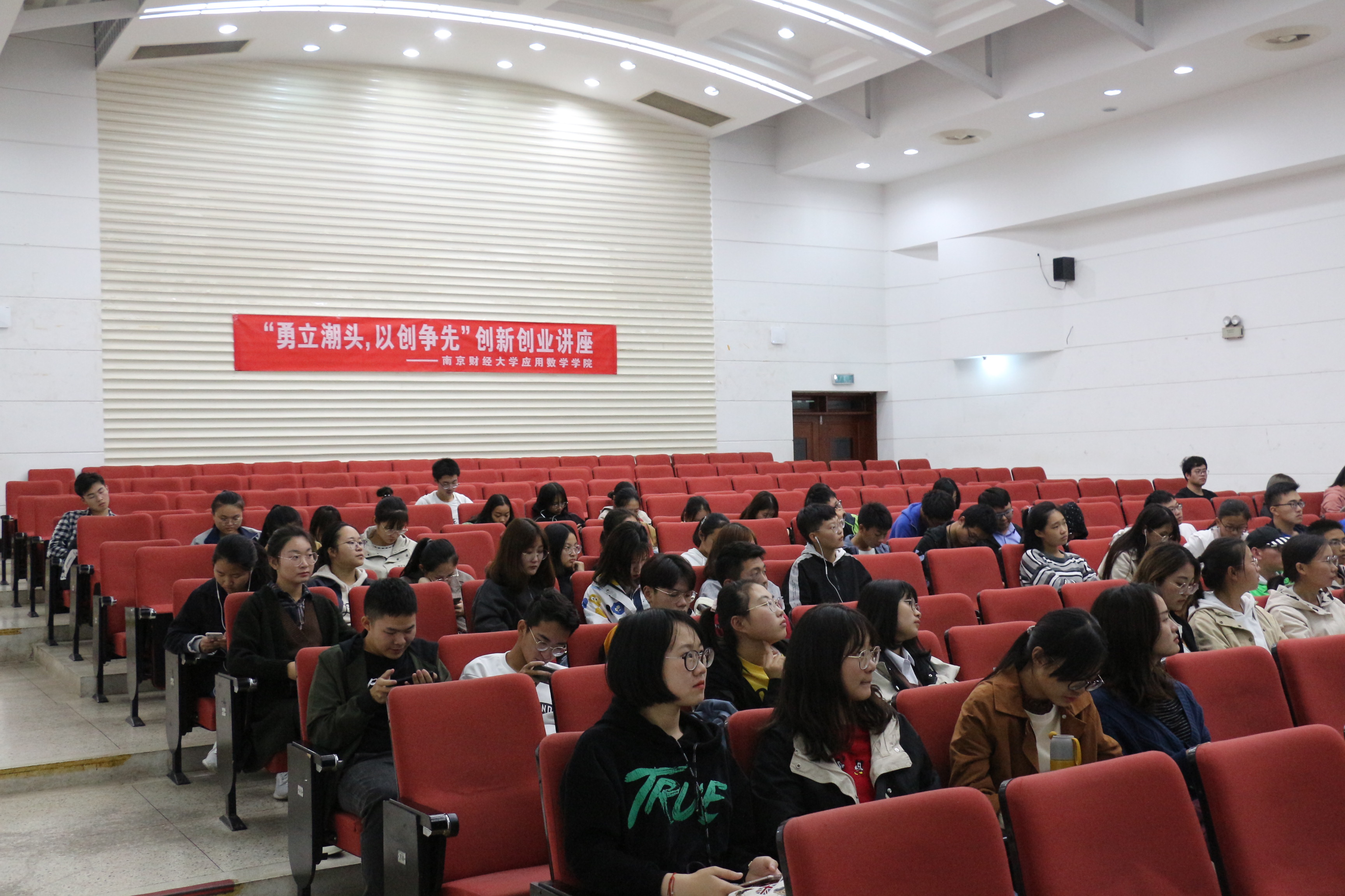 11月6日下午,应伟德victor1946邀请,高顿教育高级讲师周昂学女士在仙林校区德经楼二楼报告厅为院大一新生作了题为“勇立潮头,以创争先”的创新创业主题讲座。