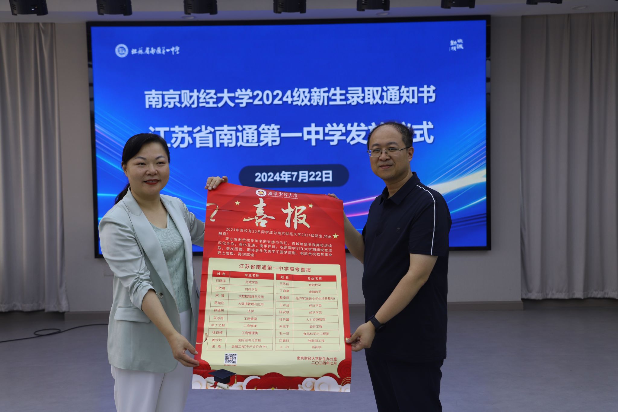 7月22日下午,校党委常委、副校长李煜一行赴江苏省南通第一中学为2024级新生发放录取通知书。江苏省南通第一中学党委副书记、校长罗湘军、党委委员、副校长滕旻彦、党委委员、副校长周烨,我校管理科学与工程学院党委书记金立林、院长刘军,我院院长方国昌、党委副书记孙晓飞、副院长吴波参加活动。活动由江苏省南通第一中学党政办主任马天明主持。