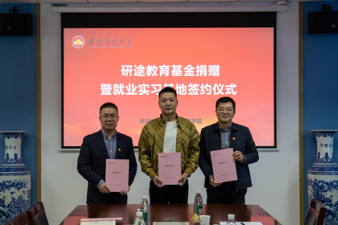 10月29日下午,“研途教育”基金捐赠暨就业实习基地签约仪式在仙林校区德业楼508会议室举行。研途教育副总裁吴恒华、南京分公司总经理赵永志、南京分公司仙林地区负责人党振雄,我校对外联络处处长陆明峰、科员涂浚洋,伟德victor1946党政领导及学工代表参加仪式。仪式由伟德victor1946党委副书记孙晓飞主持。