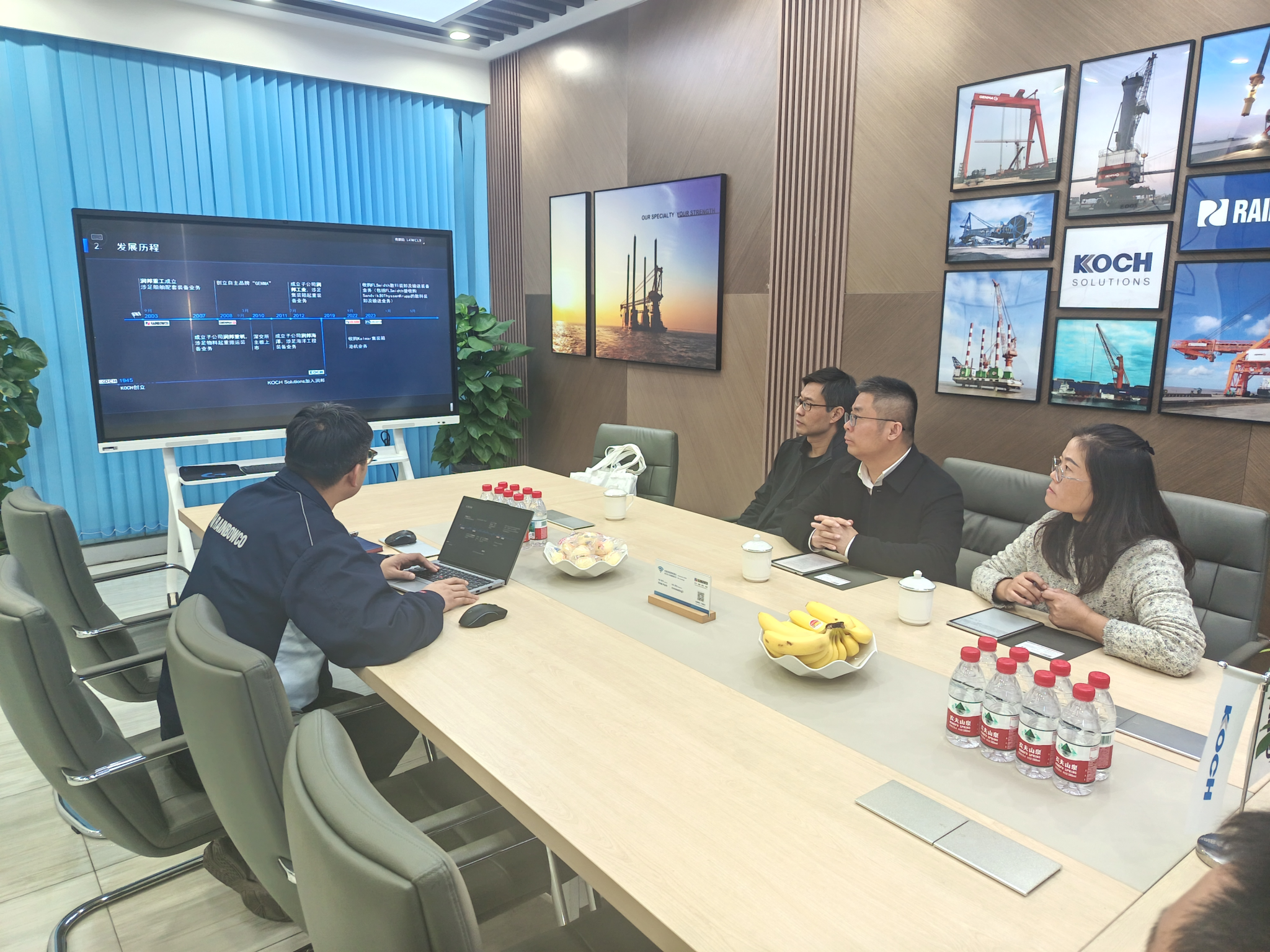 上午,走访组先后走进江苏润邦重工股份有限公司、江苏熔泰重工有限公司、南通腾通包装机械有限公司,与企业相关负责人围绕人才培养、项目合作等核心议题深入交流。三家企业分别介绍了各自在重工装备、港口机械、包装机械等领域的业务布局与发展优势,其中润邦股份在全球散料设备领域稳居领先地位,业务覆盖港口、海洋工程等多场景。方国昌院长表示,学院将依托财务会计、人工智能、物流管理、市场营销等学科优势,为企业输送适配型人才,并可联合江苏省双碳研究院资源,在低碳技术研发领域开展校企合作。双方就共建就业实习基地、推进项目协同攻关达成初步共识,助力实现企业发展与人才培养双赢。