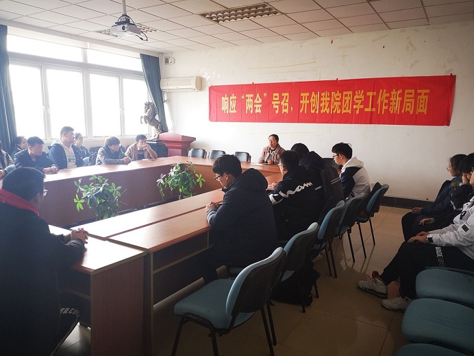 会议现场 3月6日下午,我院在仙林校区德业楼五楼会议室召开响应两会号召,开创团学工作新局面大会。全体分团委和学生会成员参与了学习讨论。会议由院副书记张杰主持。 会上,全体分团委和学生会成员收看了第十三...