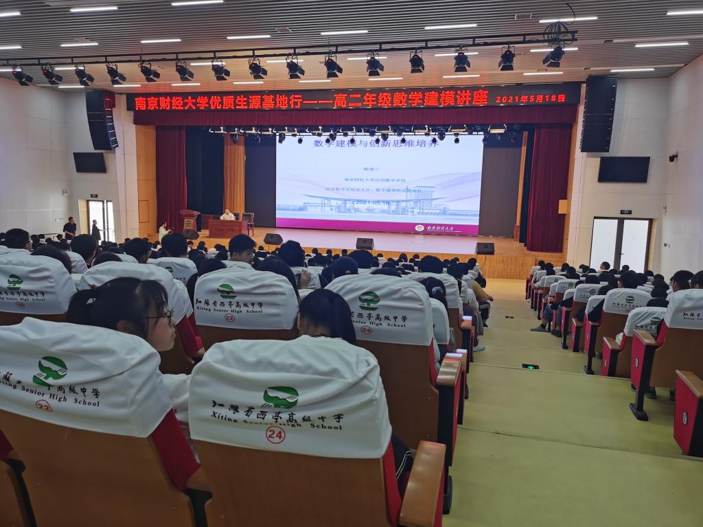 杨靖三老师作“数学建模与创新思维培养”数学建模讲座现场刘文川老师作“拥抱自信,笑迎高考”高三学生心理减压讲座5月18日,我院经济数学实验室主任杨靖三、学工办主任孙晓飞、心理辅导员刘文川一行三人赴江苏省西亭高级中学开展优质生源基地维护活动。三...